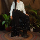 A stylish asymmetrical, high-low hem tunic top with a flowy A-line silhouette that enhances movement and adds flair. Made of a lightweight, breathable fabric like double georgette, offering both comfort and graceful drape. The fabric has a matte finish that contrasts nicely with any added embellishments. Features a soft V-neckline...